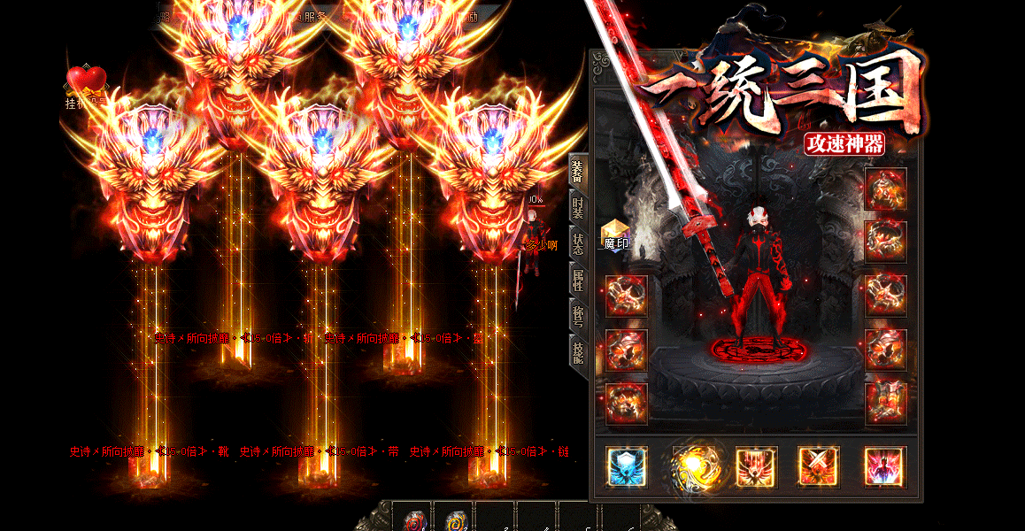 新增加60套装备.1800件单件神器装备.全部只能靠打.无合成.小BOSS爆出一切装备.看脸!!!